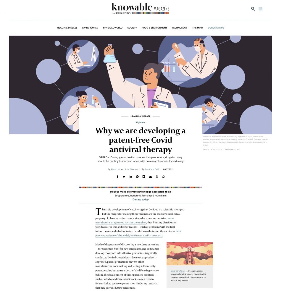 Вы можете узнать больше о том, почему мы разрабатываем беспатентную противовирусную терапию COVID, в этом материале журнала Knowable Magazine